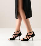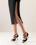 Hier ist "Riana " Aus der Reihe 'must-have' bietet Nueva Epoca ein Modell, das zum modischen Icon aufsteigt. Zwei aufeinanderfolgende elegante Kreuzriemchen streiten um die besten Position am Fuß. Wenn das nicht schon genug wäre: der verspiegelte Absatz toppt auch noch das.