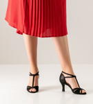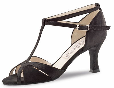 Fantastisch bequeme Werner Kern Tanzschuh Sandalette für schmale Füße mit kleiner Zehenöffnung und einem individuell einstellbaren Knöchelriemchen, welcher über ein T-Stegriemchen mit dem Vorderblatt verbunden ist. Die Sandalette sitzt entsprechend angenehm fest am Fuß.